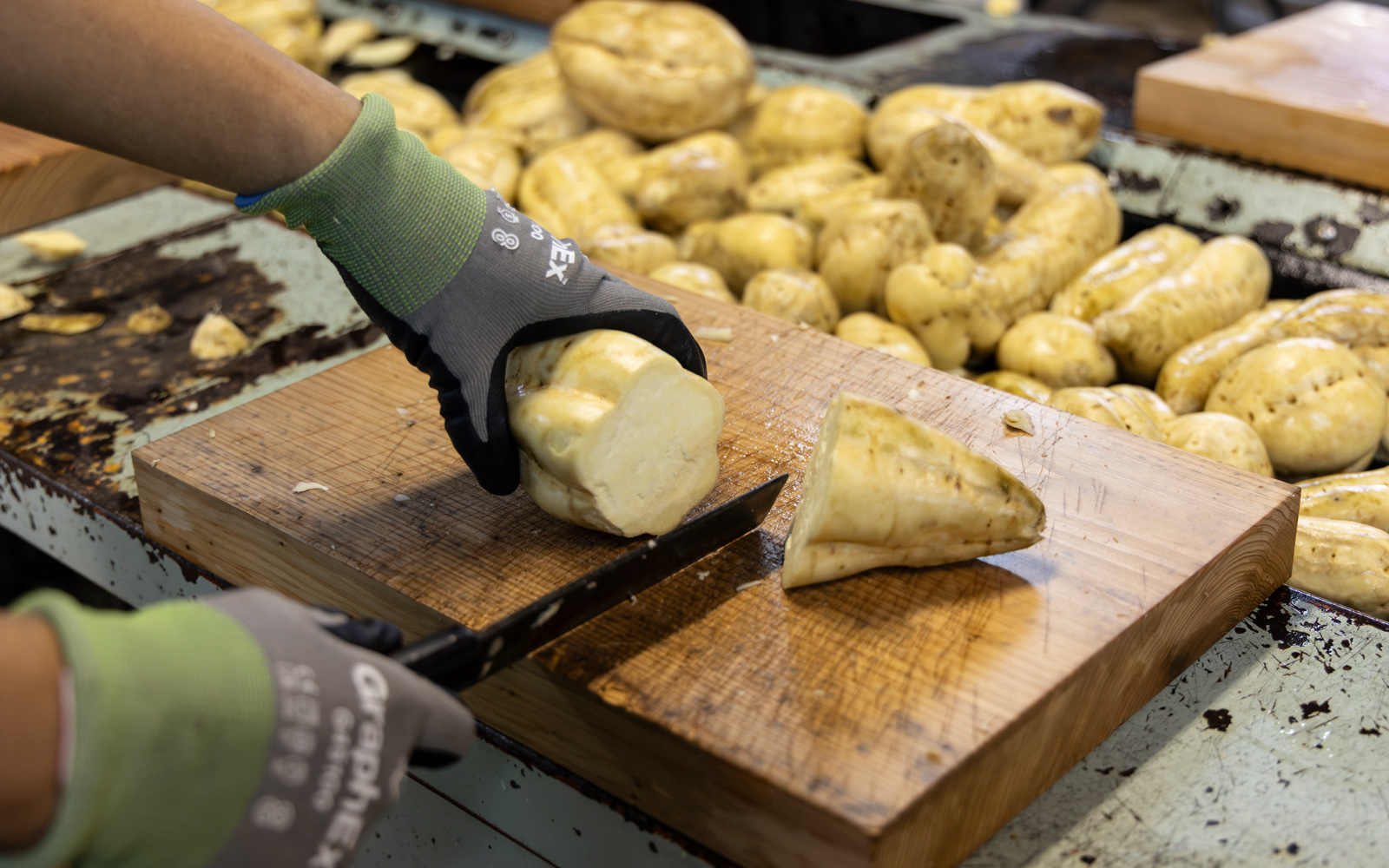 酒藏王手门严选于宫崎地区的生产农家们所种植的各种地瓜,如黄金千贯和红寿等作为芋烧酎的原料。用心培育的地瓜,在收获后进入了选择优质果实、清洗以及进行芋切的过程,以取得最好的原料。