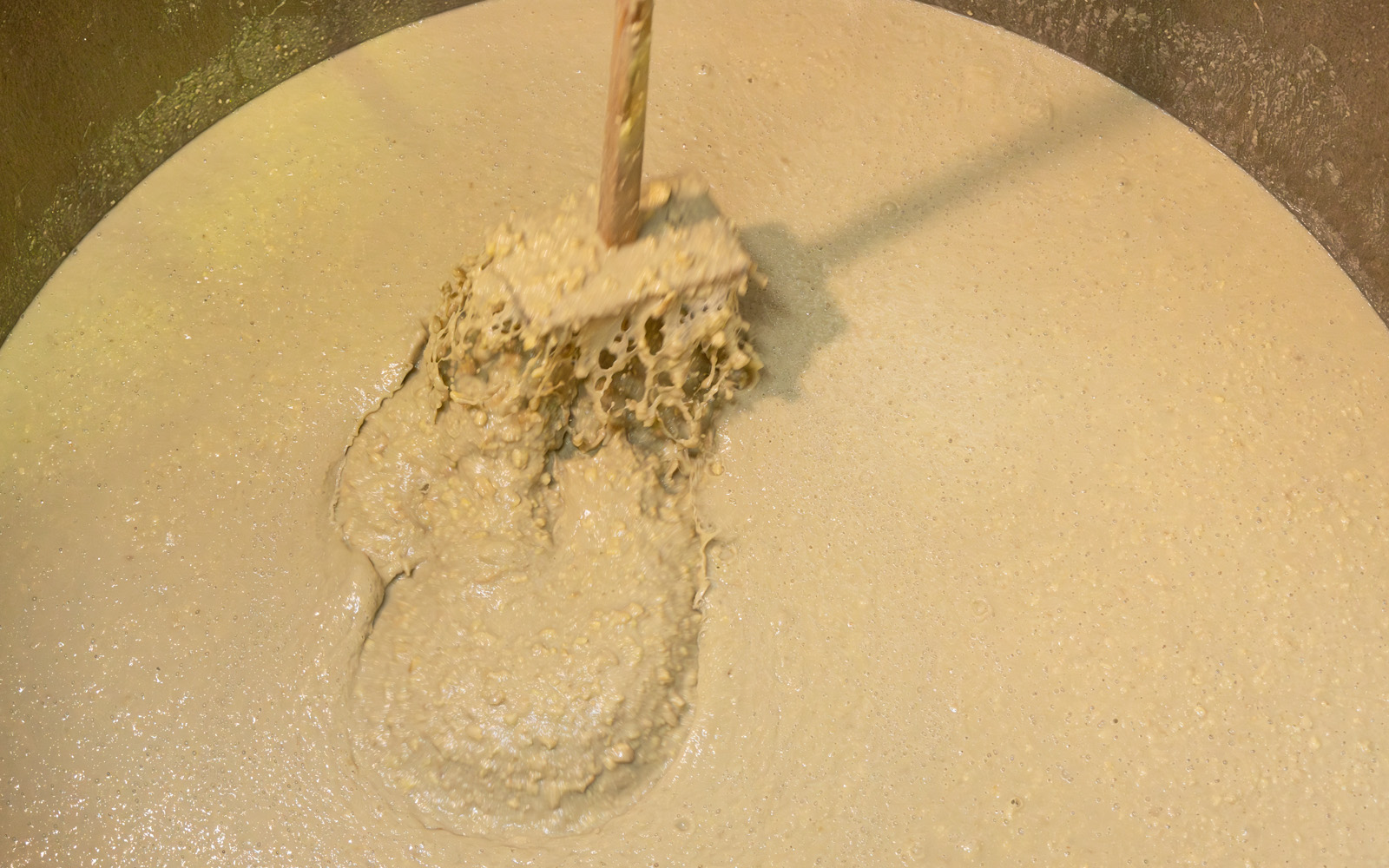 酿酒不是人类在进行,而只是微生物自行进行发酵和成熟的过程中,我们仅给予一些帮助。 特别是在确保曲菌活动无压力的情况下,巧妙地观察微生物的动态,藉由酿酒师全心全意地进行「搅拌」来使风味更加浓郁。